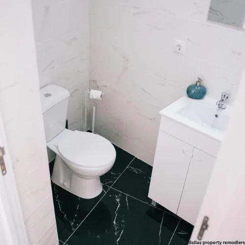 Budget tips for half bath remodels start with priorities like faucet swaps at $100. Paint walls $50, add pop of color art free. Tile floor stickers save demo costs. Shop sales for matte black fixtures. Phase jobs to spread pays. Local Dallas hauls cut shipping.